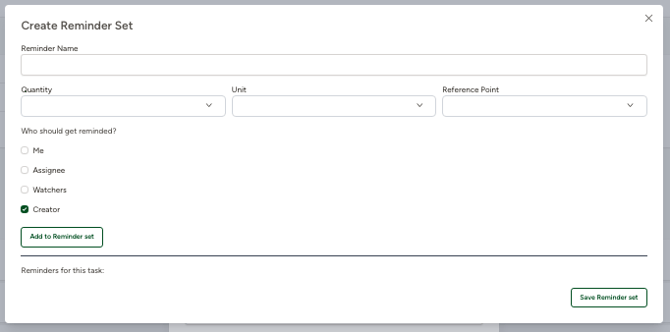 Note: Only Admin users can create Task Reminder Defaults. Once configured, these reminders are applied to every new task.